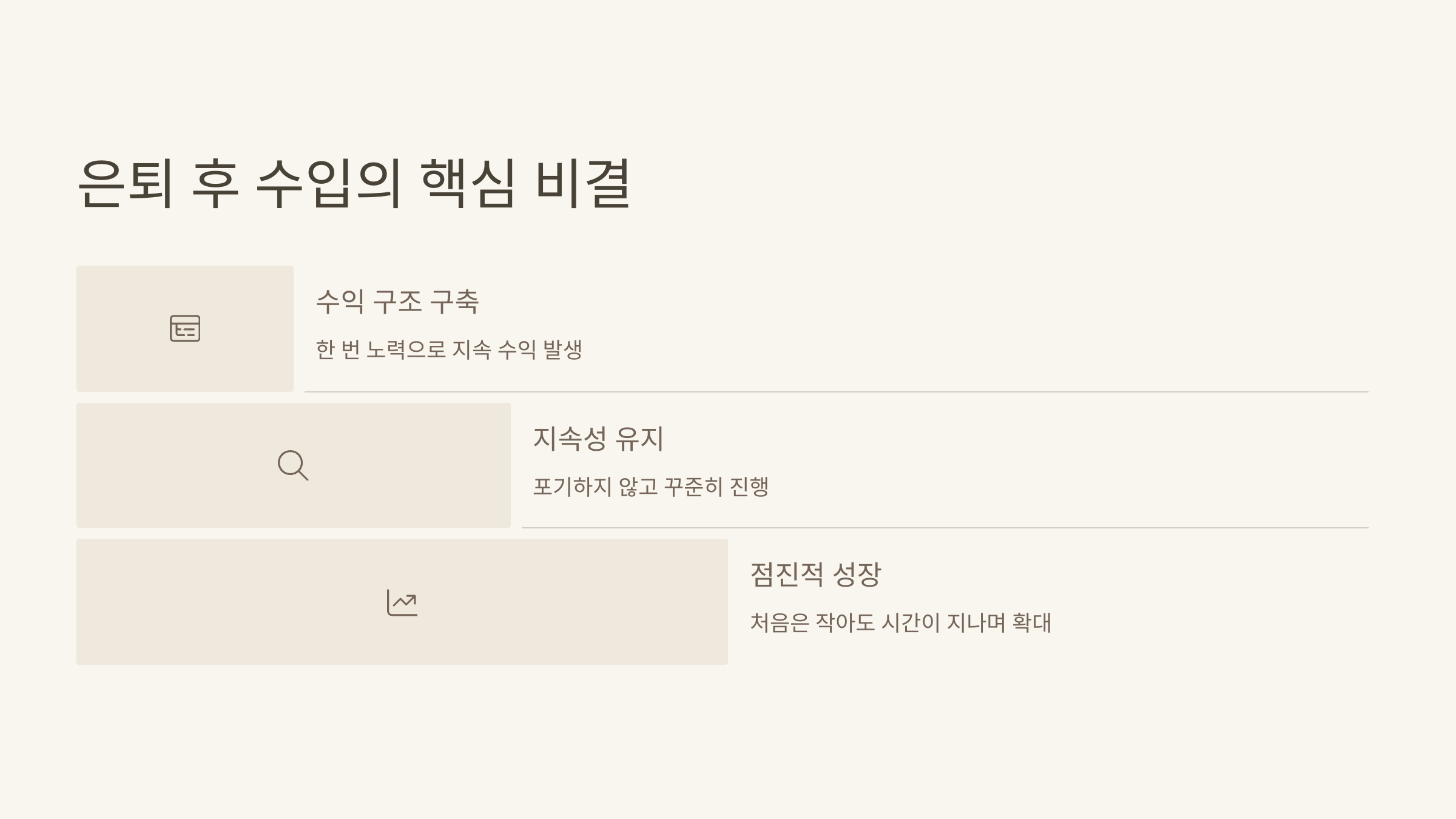 "은퇴 후 진짜 중요한 건 수익을 자동으로 만드는 구조다"