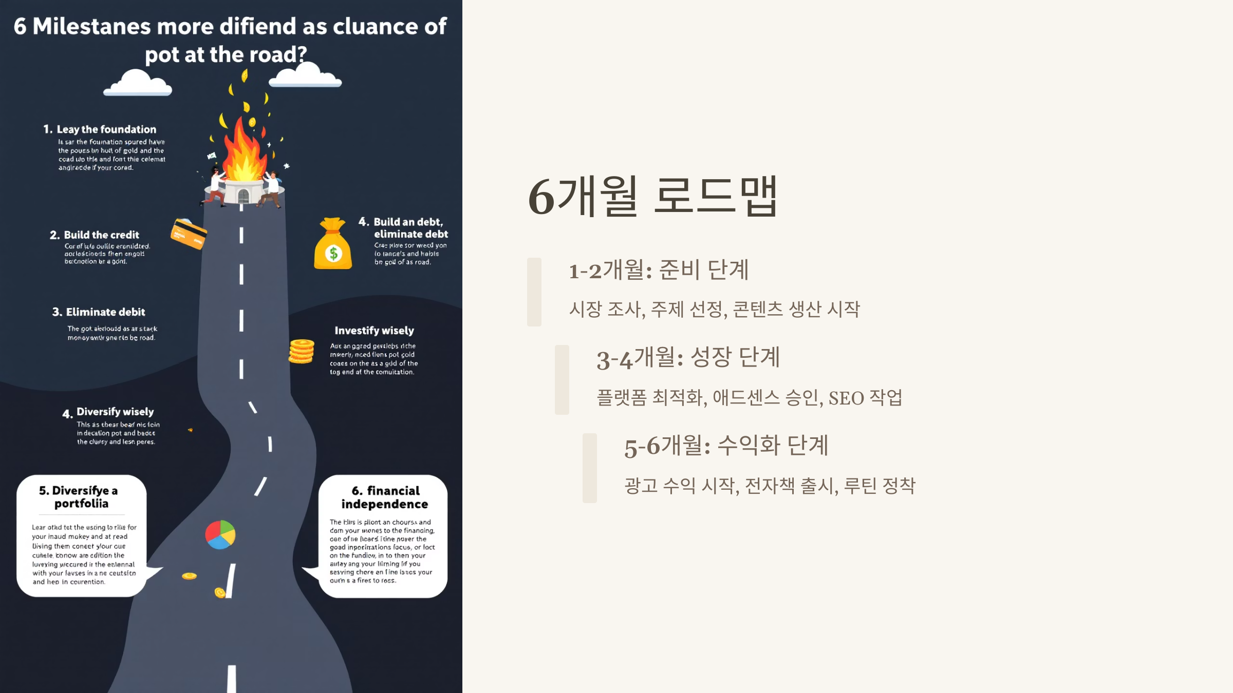 | 5개월 | 수익화 시작 | 광고 수익, 전자책 업로드 |