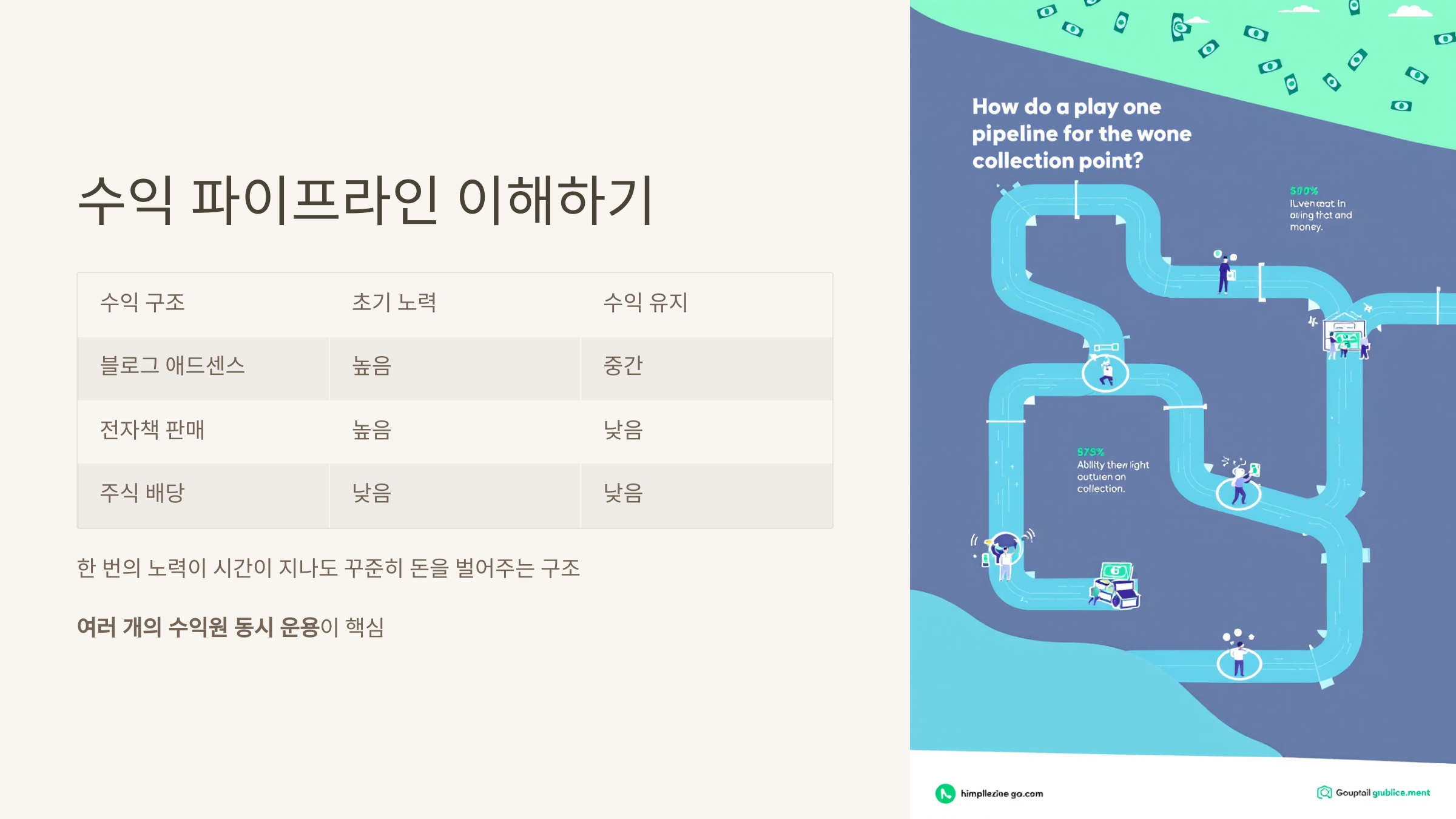 "한 번의 노력으로 꾸준히 수익이 발생하는 구조"를 만들어야 합니다.