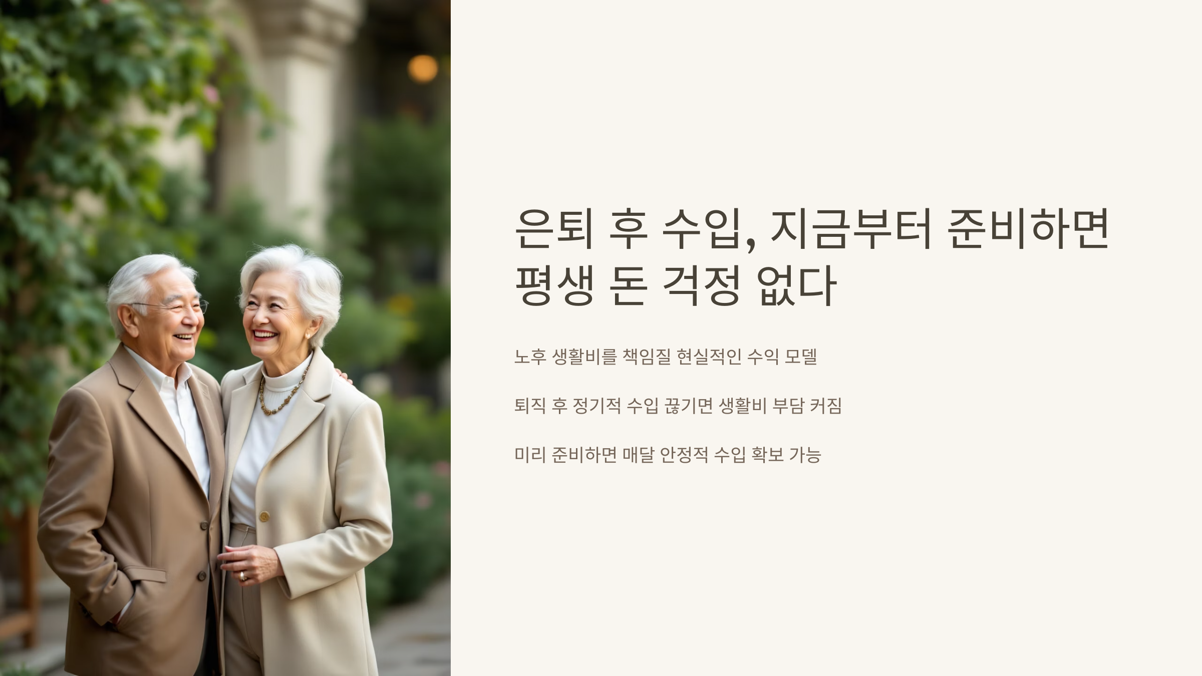 하지만 미리 준비하고 실행하면 은퇴 이후에도 매달 안정적인 수입을 확보할 수 있습니다