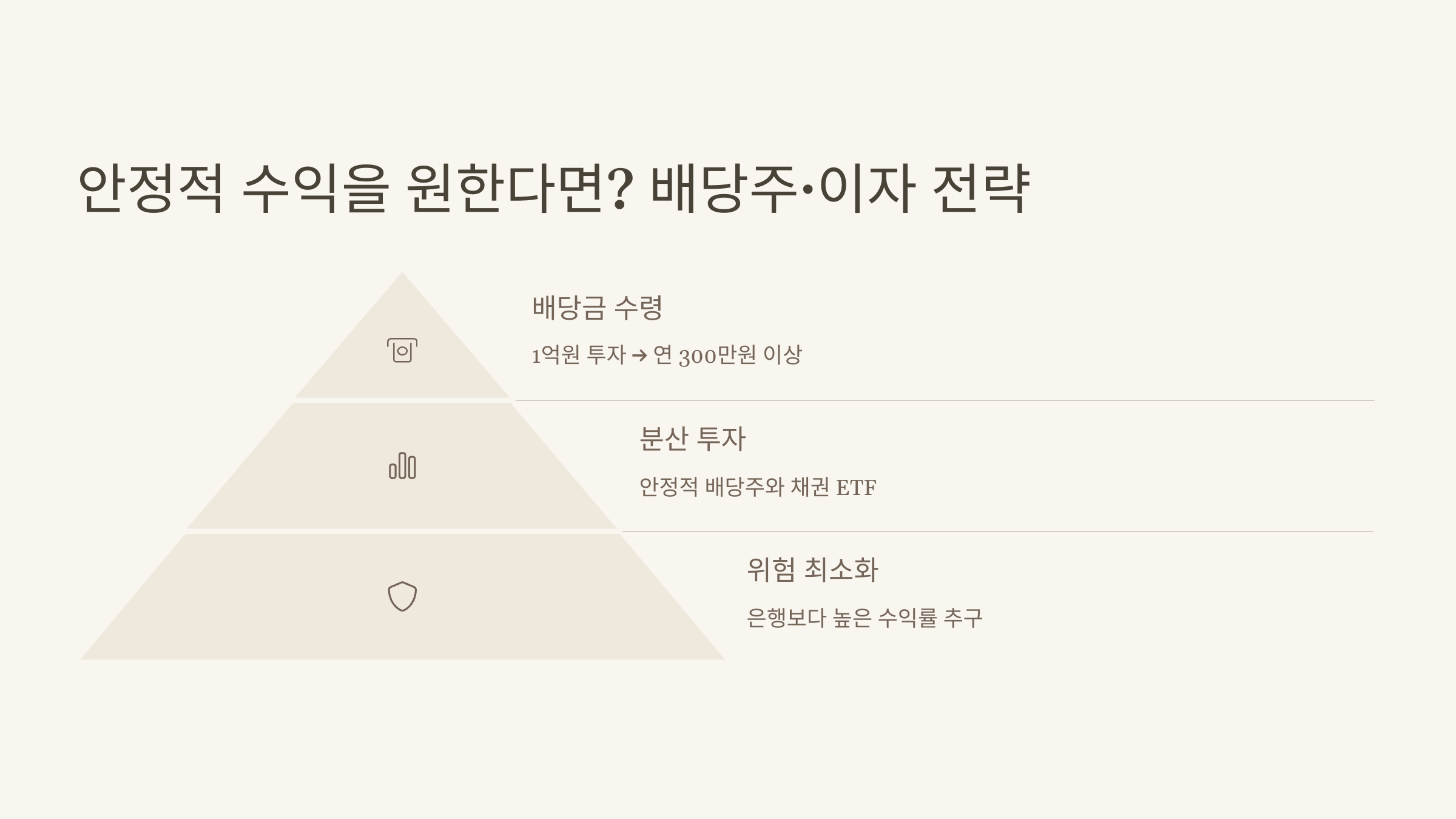 안정적인 배당주나 채권 ETF 등에 분산 투자하면