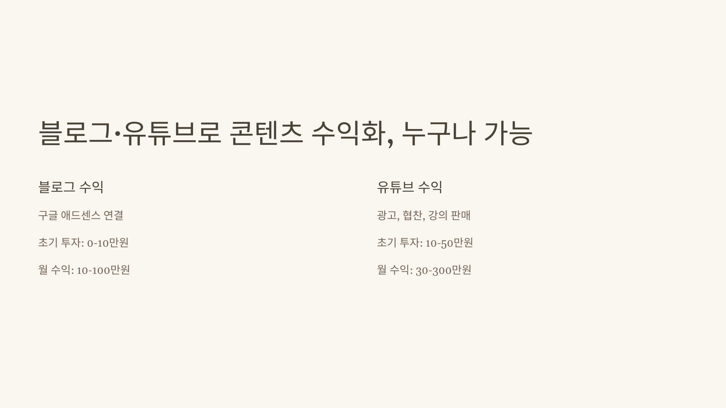 블로그·유튜브로 콘텐츠 수익화, 누구나 가능
